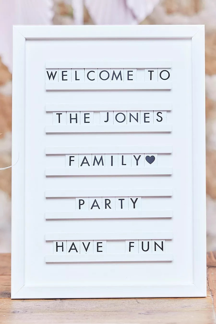 Mukautettava kyltti esimerkiksi juhlien koristeeksi tai sisustukseen